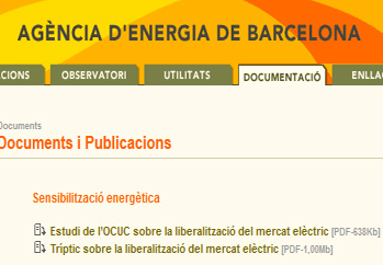 Documents de sensibilització energètica de la mà de l’agència d’energia de Barcelona, disponible amb els tres idiomes (català, castellà i anglès).