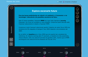 El recurs educatiu Visions 2050 es basa en els resultats de l’estudi prospectiu TRANSVISIONS realitzat per un grup d’empreses, Tetraplan (Copenhaguen), Mcrit (Barcelona), ISIS (Roma) i la Universitat de Leeds durant el període 2005-2009. L’estudi va ser un encàrrec de la Comissió Europea (Direcció General de Transports i Energia), en el marc del procés de revisió del Llibre Blanc de Transports de la Unió Europea. L’objectiu de l’estudi era avaluar fins a quin punt els canvis tecnològics, els canvis en els valors socials i canvis en els hàbits de mobilitat, podien contribuir a assolir l’objectiu de la CE de reduir un 20 % les emissions de CO2 degudes al transport l’any 2020, i un 50 % el 2050.