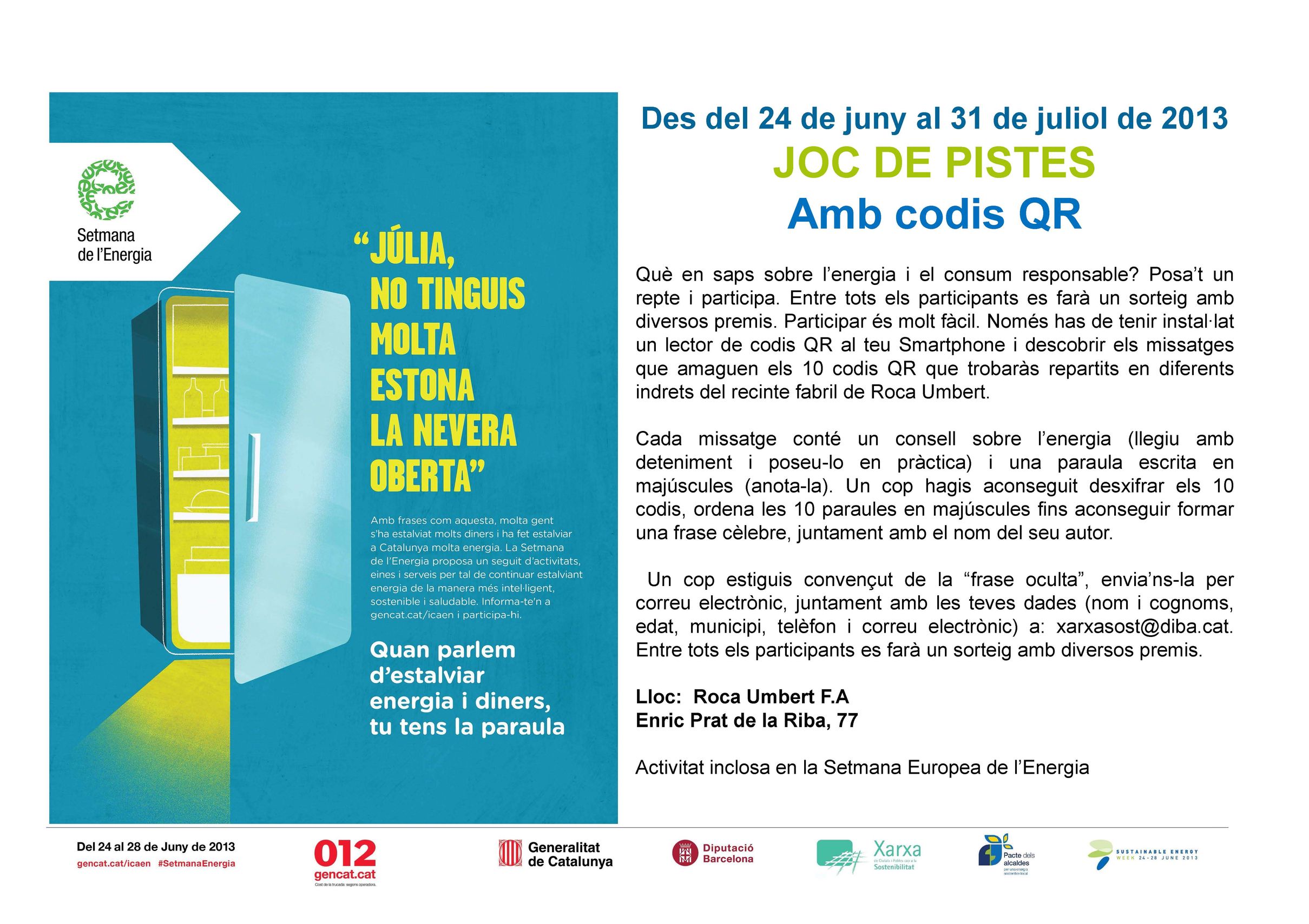 L’any 2013 els principals actes entorn a la setmana de l’energia es van fer a Roca Umbert i en part en el programa de l’obert per vacances el dia 28 de juny.