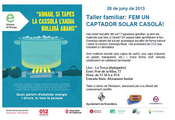 Taller familiar sobre l’energia: Fem un captador termosolar. Dinamitzat per Marc Boada